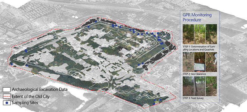 Soil-based heritages are vital to world cultural heritage, reflecting ancient human activities and the dynamic coupling between historical sediment and contemporary landscape functions (Zhang et al., 2012). Along with climate change, global soil-based heritage sites are exposed to more significant risks (Machat, C., & Ziesemer, J., 2017). Regarding biological factors, vegetation exhibits an annual 25 % increase in underground biomass, creating conflicts between tree root systems and their displacement of soil structures (Grabosky & Gucunski, 2019), which has led to the degradation of the apparent morphology of the soil-based heritages. Nevertheless, trees also provide rainfall interception and soil stabilization (Xiao et al., 2024). The dual impact mechanism and the assessment methodology of trees form a critical foundation for heritage vegetation management, representing a current research gap.